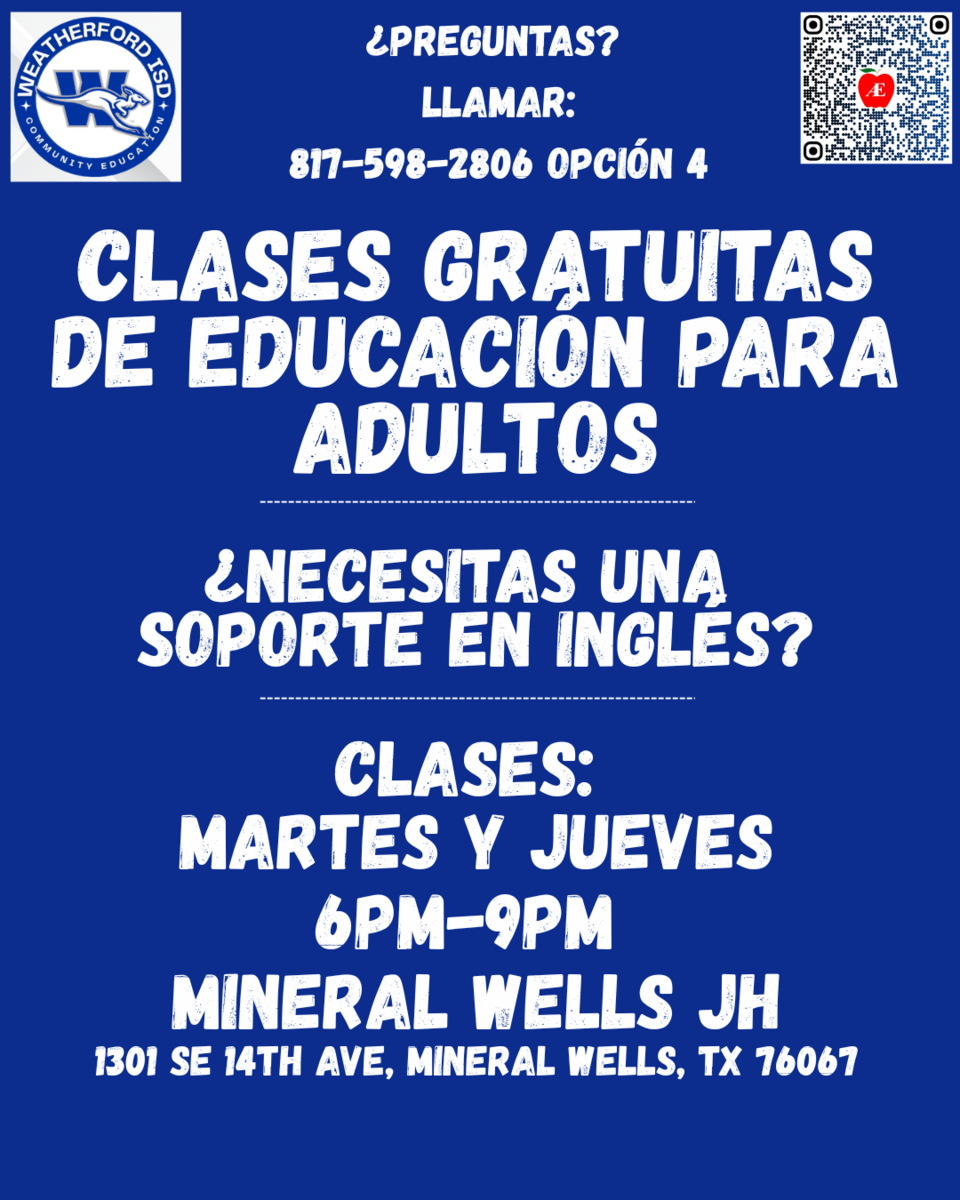 Dear MWISD Parents, We are excited to share some wonderful news for Mineral Wells! ESL (English as a Second Language) Adult Education Classes are starting soon, and wed love for youor someone you . . .